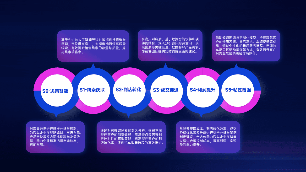 通过拓宽潜在客户来源、、优化线索分配并提高到店转化率,,,以增强销售效率。。。同时,,,,利用线索数据不断优化分析模型,,,有效提升转化率,,扩大营销影响力。。。